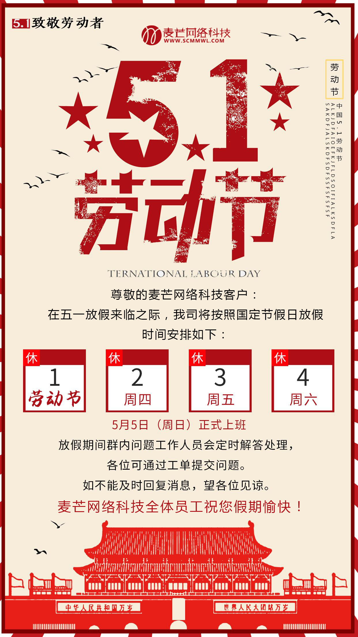 1、放假時間:2019年5月1日至2019年5月4日放假,共4天。